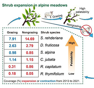 我园恢复生态学研究组在祁连山高寒草甸生态系统灌木扩张研究方面取得新进展