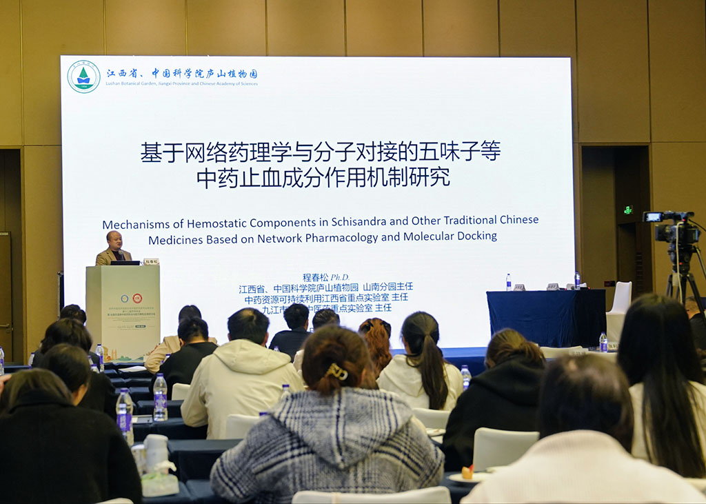 受世界中医药学会联合会中医药免疫专业委员会会长、长江学者、海外杰青项目获得者,周华教授邀请,我园程春松博士首次在会议公开报道了“基于网络药理学和分子对接的五味子等中药止血成分作用机制研究”,研究构建植物来源的中药止血化合物数据库,通过创新的计算机药物筛选,首次获得了多个通过抗纤溶作用途径的筛选的疗效优于阳性药(如:氨甲环酸&氨基乙酸)中药止血活性成分。参加本项研究的还有张雨婷,谢钊启博士;陕西中医药大学王育伟教授团队。