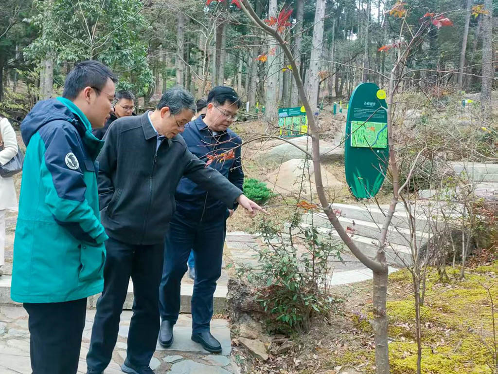 2025年11月24日,省林学会理事长魏运华、省林科院党委书记杨杰芳率队调研庐山植物园,园副主任冯晨陪同。