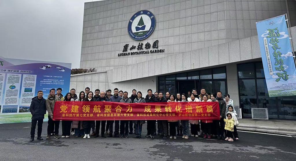 2026年2月1日,省科技厅第七党支部、省科技信息所第六党支部、江西省科技成果转化中心支部及庐山植物园第二党支部在庐山植物园山南分园联合开展“党建领航聚合力,成果转化谱新篇”主题党日活动。省科技厅科技成果促进处处长刘清梅、省科技信息所党委书记汪仕勇、省科技成果转化中心主任易均、庐山植物园党委书记魏宗贤等带领各支部党员参加活动,以党建红引领科技蓝,共探成果转化新路径。