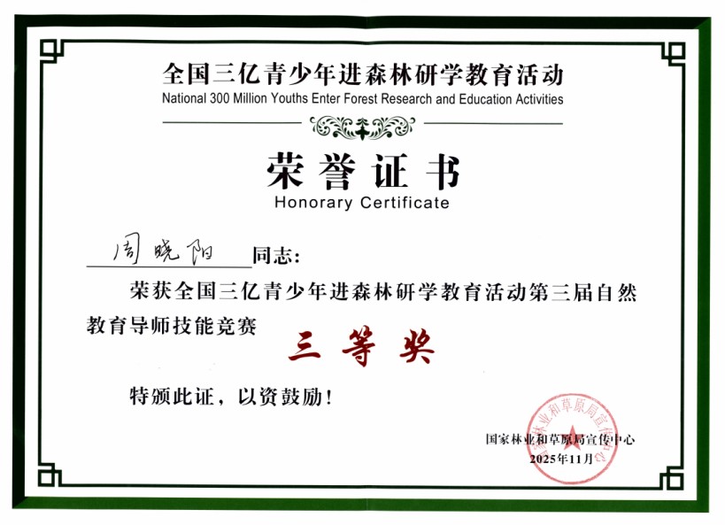 本次“全国三亿青少年进森林研学教育活动第三届自然教育导师技能竞赛”的成功举办,具有深远的意义。“全国三亿青少年进森林”研学教育活动是引导广大青少年亲近自然、了解自然、热爱自然的重要载体。自然教育导师作为研学教育活动的一线实施者,其能力水平直接关系到研学教育的质量与成效。本次竞赛不仅为自然教育导师提供了一个高水平的展示、交流与切磋平台,更通过以赛促训、以赛促建的方式,显著提升了自然教育导师队伍的项目策划与现场教学能力,是林草系统加强生态文明宣传教育、培养骨干人才队伍的一次生动实践。