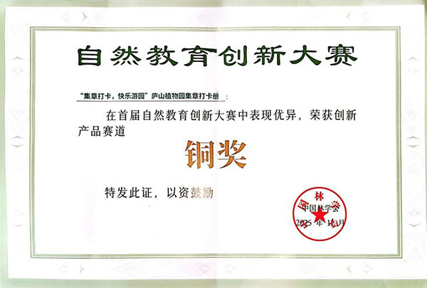 近日,由中国林学会主办的“首届自然教育创新大赛”评选结果正式公布。江西省、中国科学院庐山植物和北京中科资源有限公司联合开发的《“集章打卡,快乐游园”庐山植物园集章打卡册》作品,从全国众多优秀参赛作品中脱颖而出,荣获创新产品赛道铜奖。