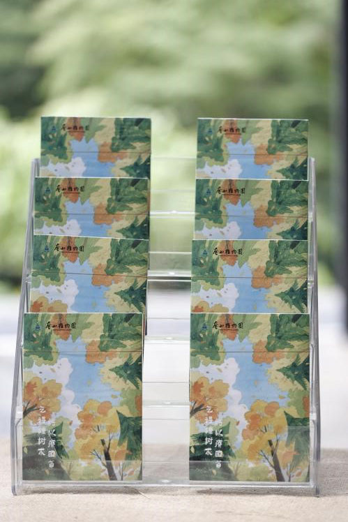 该获奖作品以庐山植物园内九处标志性景点为依托设计印章图案,涵盖模式标本园、珍稀树廊、山水景观园、草花区、三老墓、科普馆、潺廊、中心景区和杜鹃分类园。设计灵感来源于中国古代的山水画作以及现代“手帐文化”,巧妙融合中国现代园林与当代记录方式,满足游客收集、记录、创作与分享的需求。打卡册内含九张核心景点卡片,游客可以在游览过程中,从“被动观光”变为“主动探索”,于各景点收集特色印章,并在集章的过程中,深度探寻庐山植物园的自然密码与文化内涵。