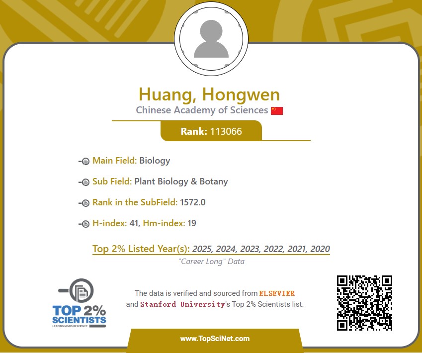 黄宏文研究员荣登2025年“全球前2%顶尖科学家”榜单