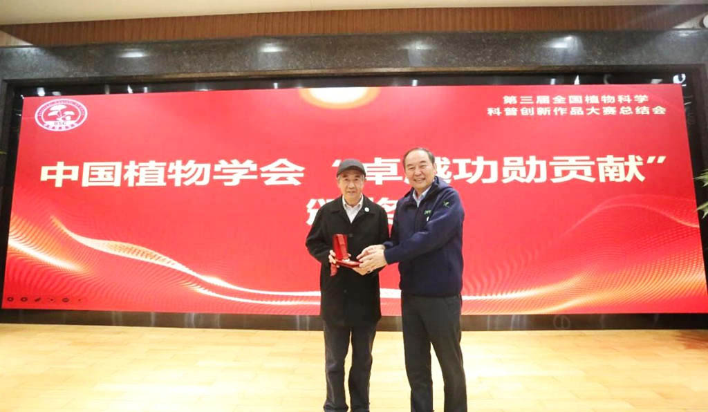 黄宏文研究员长期致力于植物迁地保护研究和植物种质资源驯化利用研究,在猕猴桃等重要作物育种领域取得了一系列重要成果。同时,他积极推动植物科学知识公众传播,为连接专业科研与社会认知发挥了重要作用。此次被授予“卓越功勋贡献”奖章,体现了中国植物学会对其科研贡献与科普工作的高度肯定。