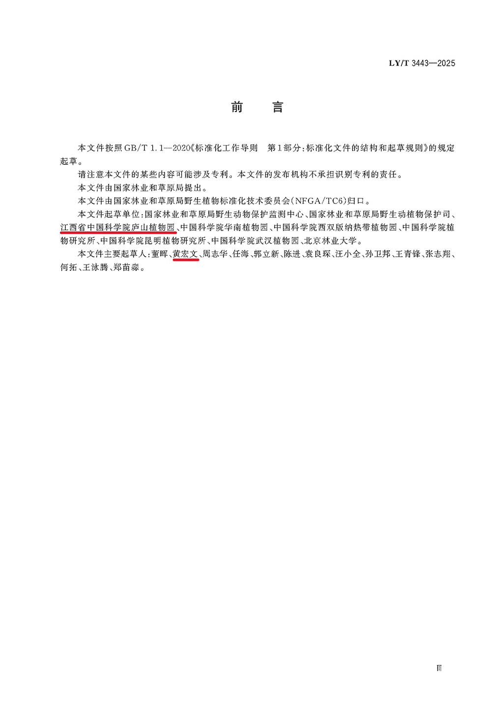 近日,国家林业和草原局正式发布林业行业标准《野生植物保护术语》(LY/T 3443—2025),这是我国首部系统规范野生植物保护领域专用术语的国家标准。该标准将于2026年4月1日起正式实施,标志着我国野生植物保护工作在标准化、规范化、科学化管理方面迈出关键一步。值得关注的是,庐山植物园黄宏文研究员作为主要起草人之一,深度参与了该标准的研制工作,为行业标准化建设贡献了重要智慧。