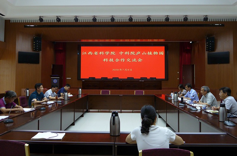 2020年7月8日下午,庐山植物园黄宏文主任、詹选怀书记一行赴省科学院洽谈科技合作。省科学院党组书记、院长熊绍员,党组成员、副院长魏国汶出席会议。